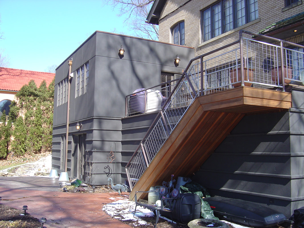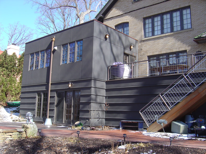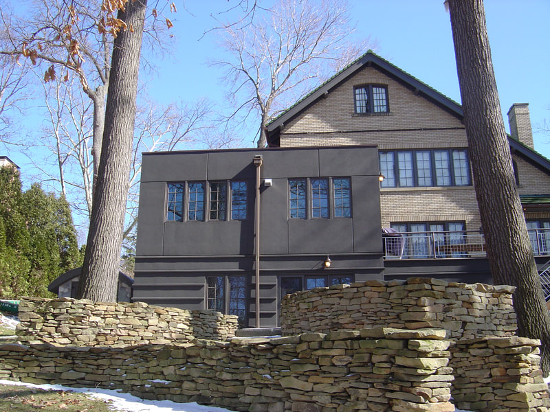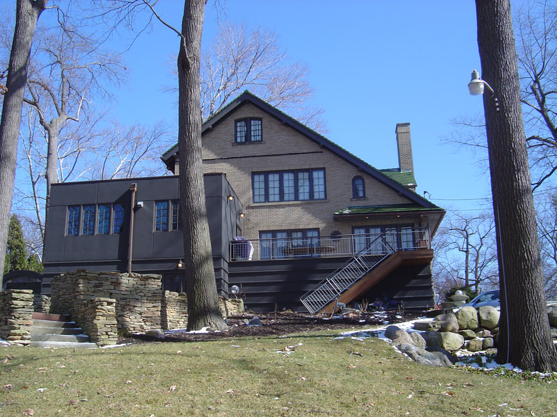 Addition and alterations to a craftsman-style home, increasing livability and enhancing the house's connection to the lake site. Engaging wood, copper, stainless and stucco with the existing stone and brick house, detailing emerged as the focus of this design.